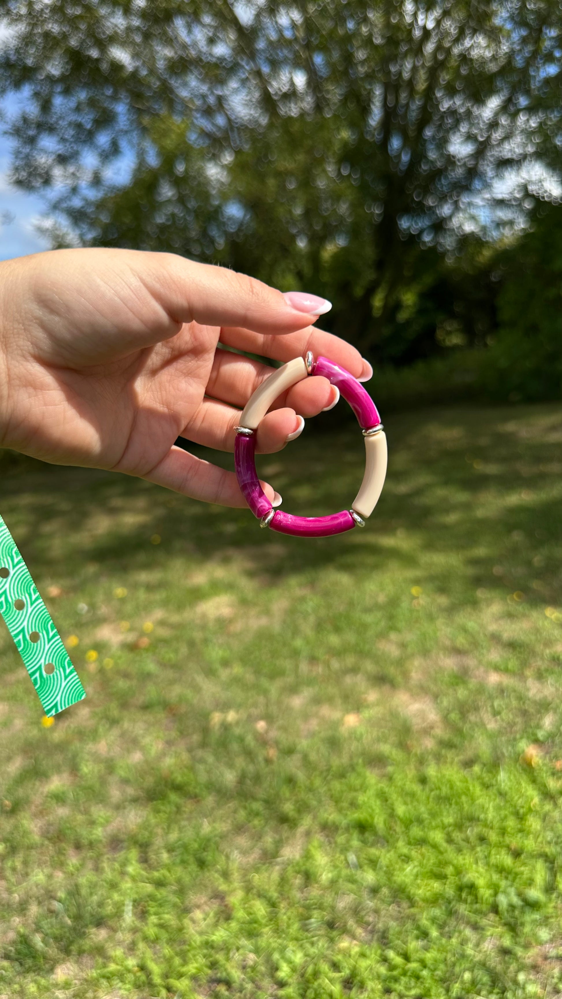 Le bracelet Lily est composé de petits tubes en résine assemblée la main.🎀