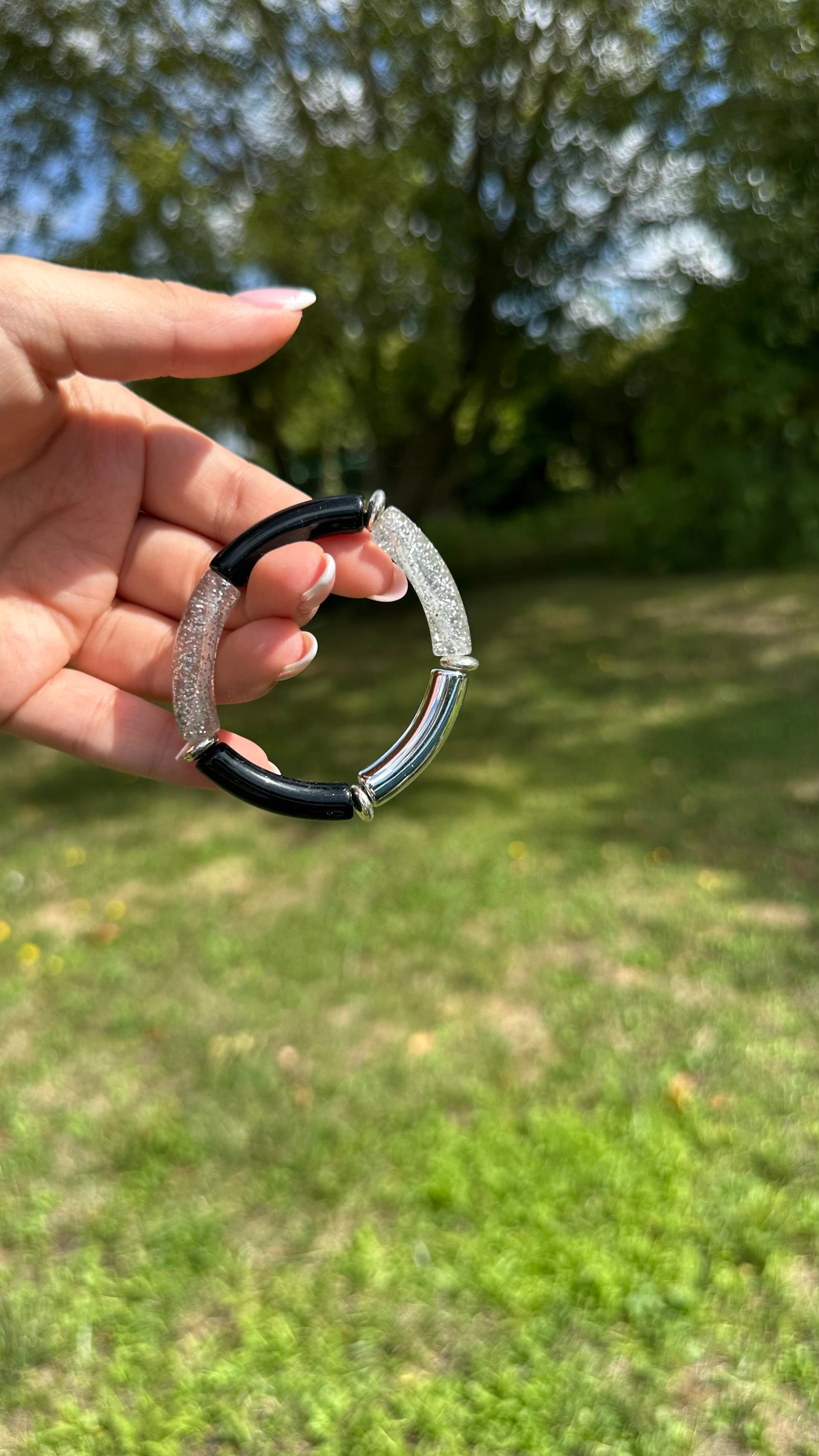 Le bracelet Lily est composé de petits tubes en résine assemblée la main.🎀