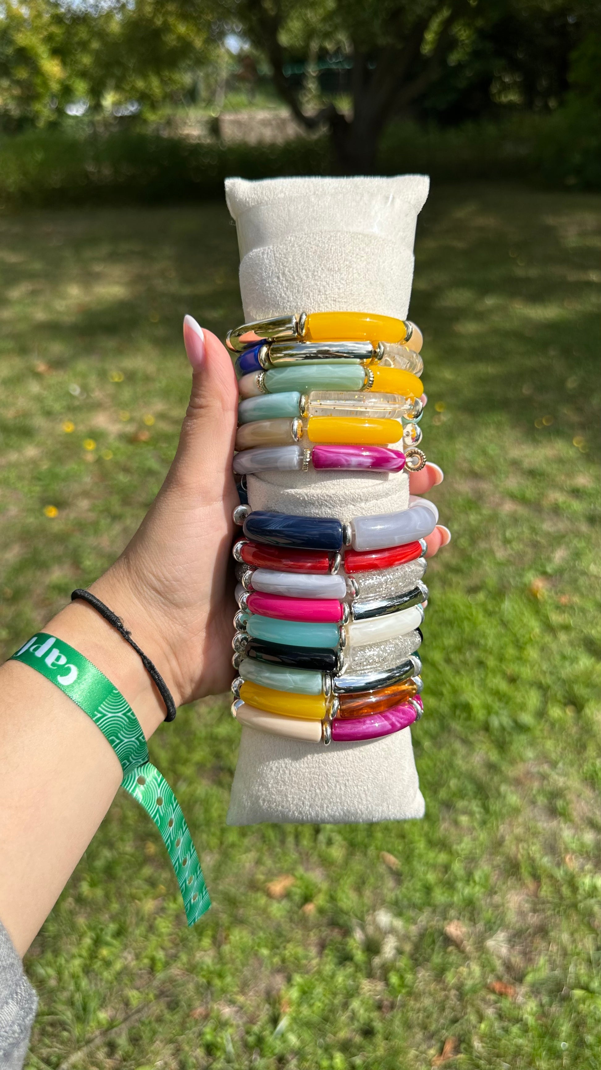 Le bracelet Lily est composé de petits tubes en résine assemblée la main.🎀
